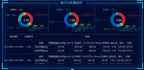 可以監(jiān)控生產(chǎn)過程中的骨料配比、水泥量、粉煤灰量、水膠比、拌合產(chǎn)量、摻配比等各項(xiàng)數(shù)據(jù),并具有實(shí)時誤差報(bào)警的特色功能,同時可以根據(jù)實(shí)驗(yàn)室配比、生產(chǎn)配比的優(yōu)化,對常用不同型號的混凝土強(qiáng)度進(jìn)行自動優(yōu)化推薦。