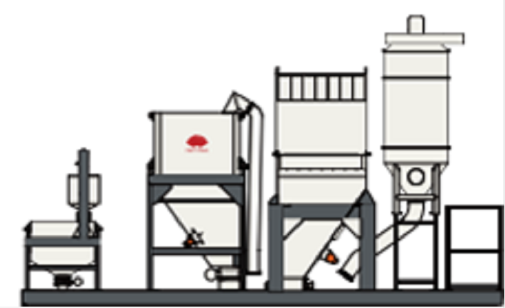 ● 上部設(shè)彩鋼防風(fēng)雨罩,下部設(shè)集料槽,下雨不停產(chǎn), 刮風(fēng)不揚塵。